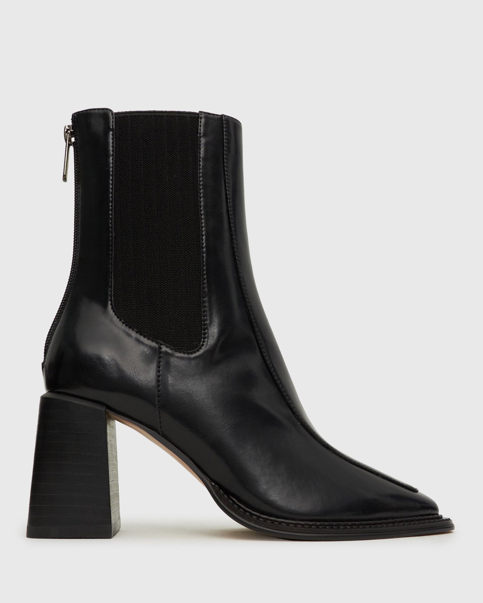 City edge, reimagined. DOWNTOWN steps up your cold-weather wardrobe with a sharp square toe, sculptural block heel, and sleek black finish. A back zip and elastic side gussets keep things effortless, while the stacked heel gives you just the right amount of height—without sacrificing comfort. Wear them with everything from midi skirts to wide-leg denim for that cool, downtown energy.
