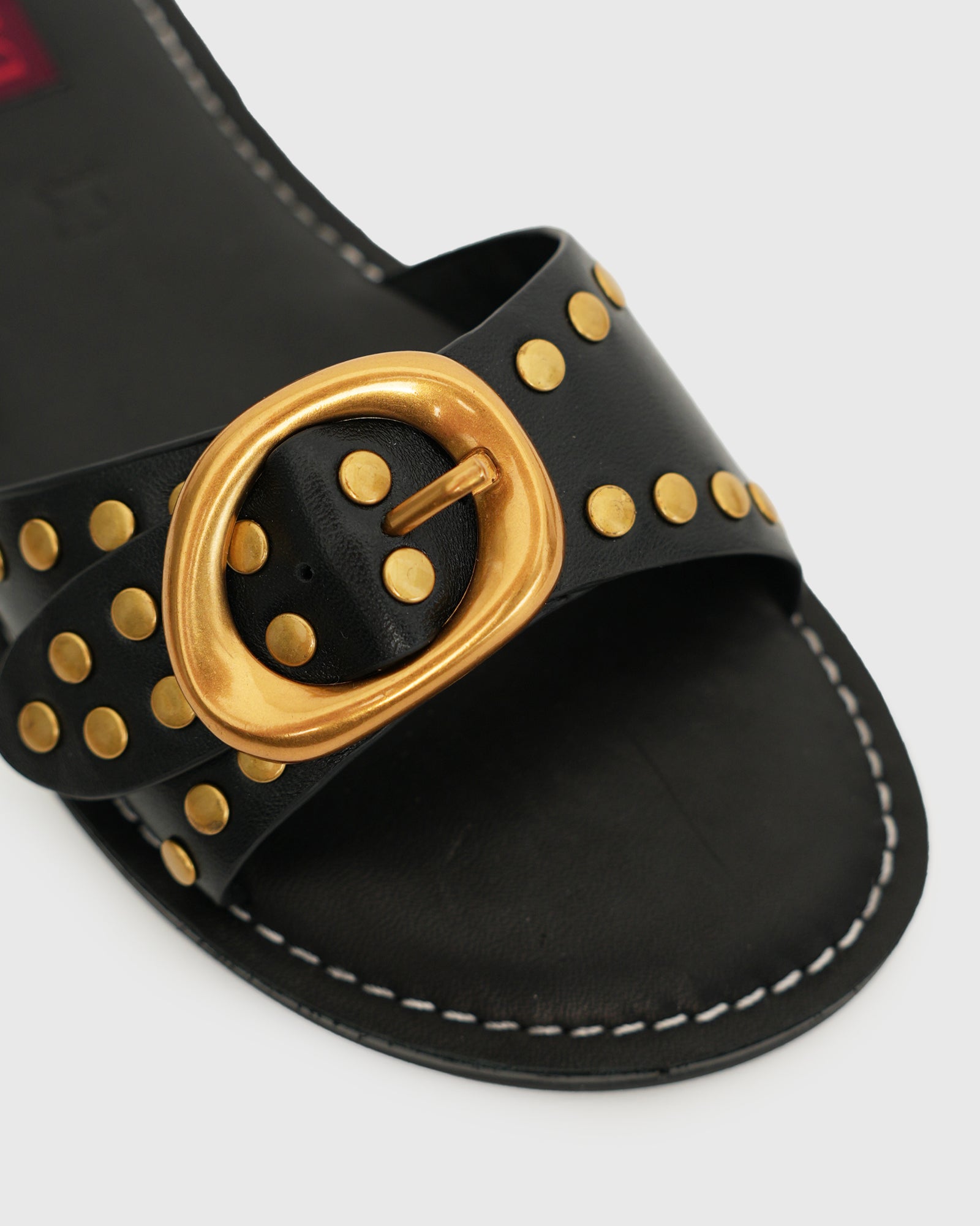 ZEN Leather Studded Buckle Slide Sandals